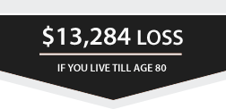 Now, you may feel that living to age 100 is unrealistic. If so, then back that up by 20 years. If you were to live to age 80, the loss in retirement income is still $13,284.